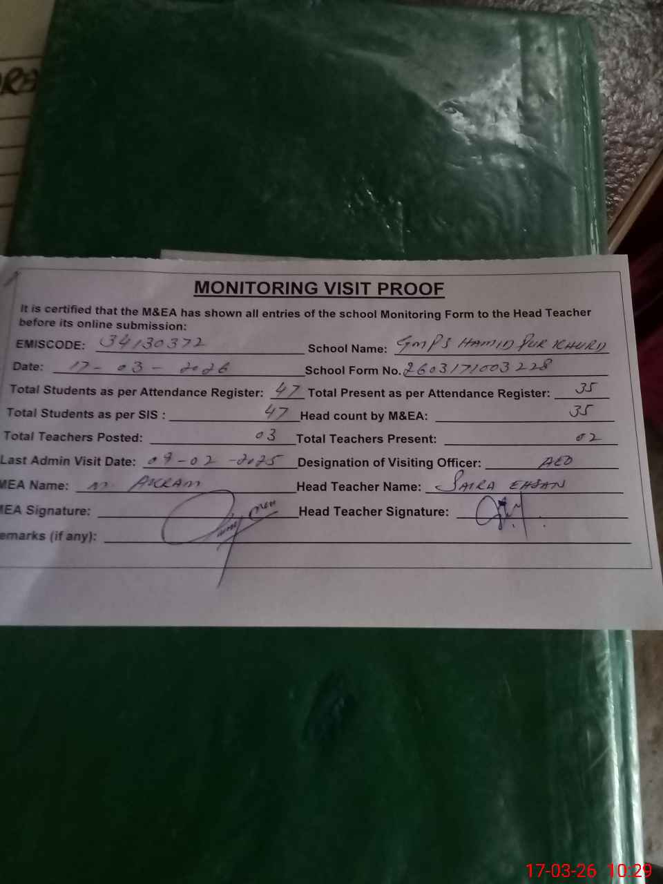 | EMIS Code: 34130372 | Name of School: GMPS HAMID PUR KHURD | |||