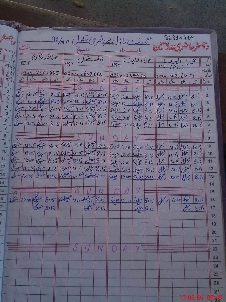 | Name: Hu**** Ay**** Designation: (School Headmaster's/Headmistress's) PST Phone/Cell Number: 03**** |