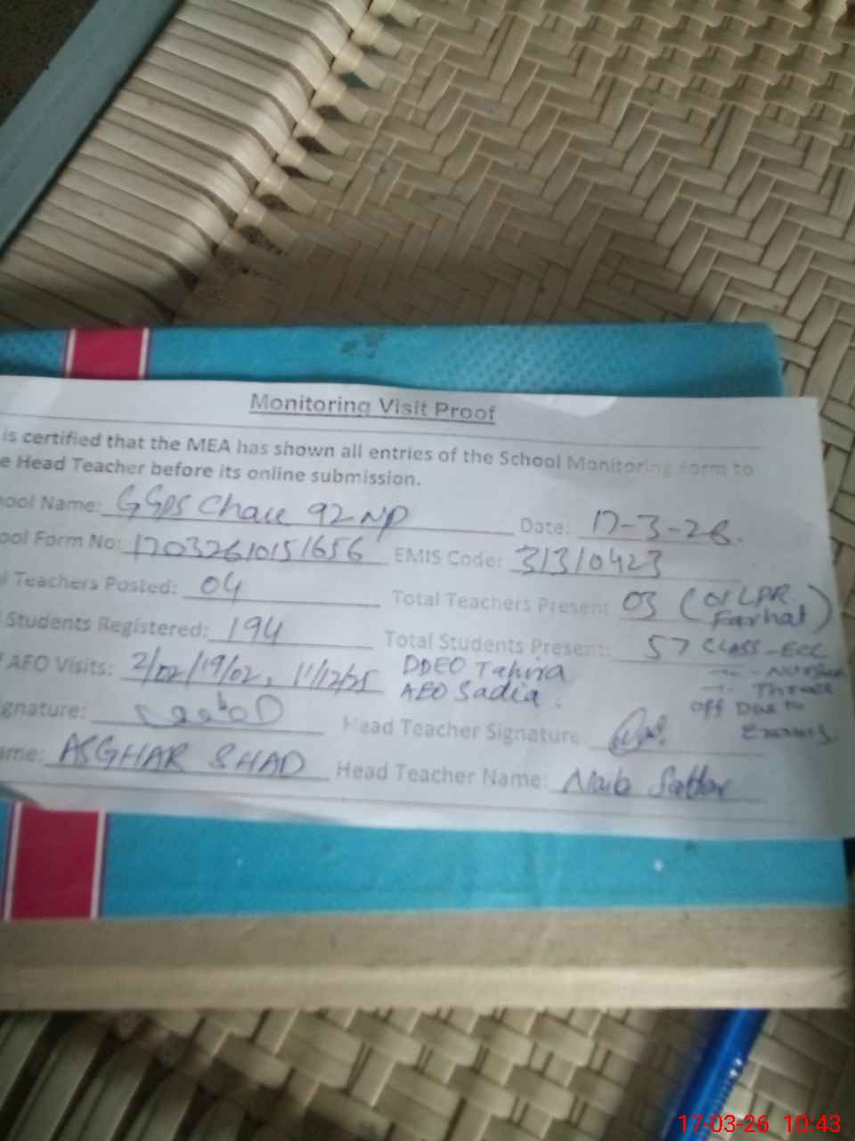 | EMIS Code: 31310423 | Name of School: GGPS CHAK NO. 92/NP | |||