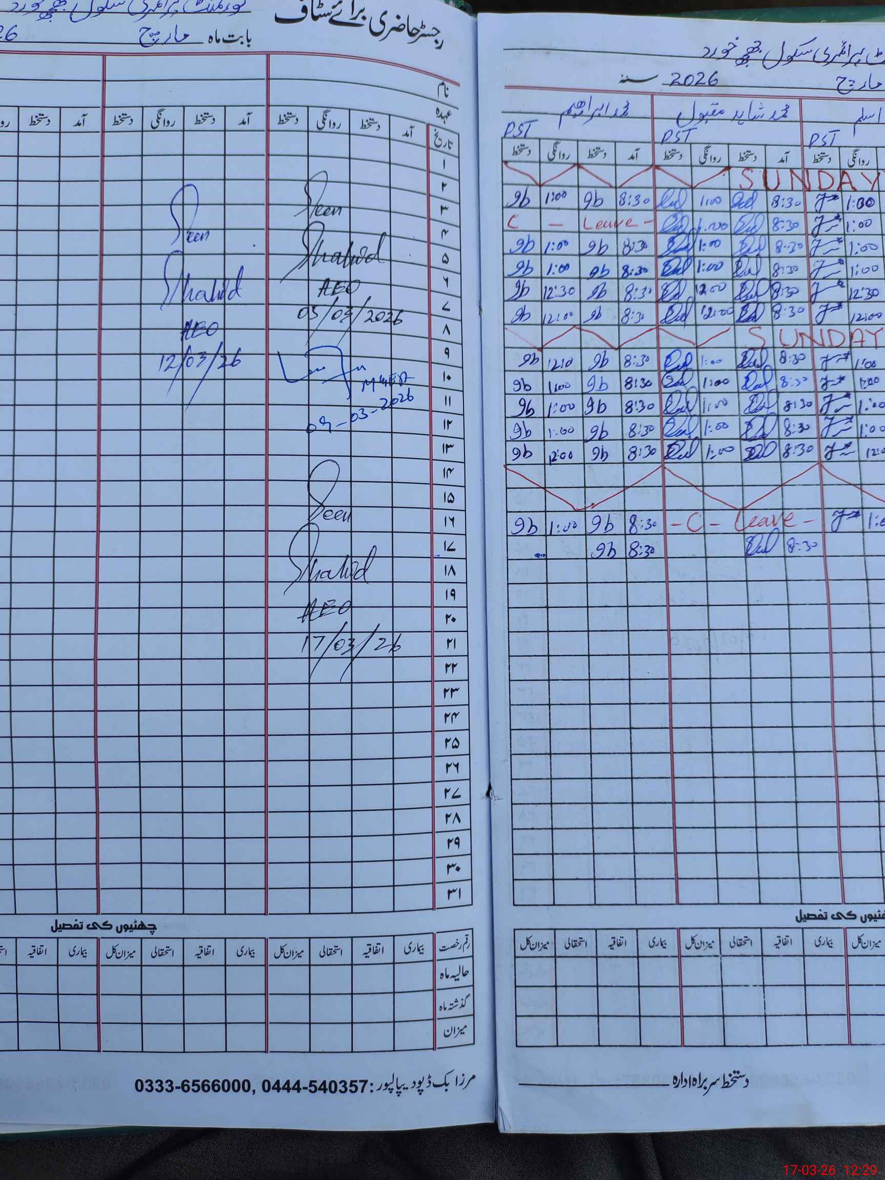 | Name: SA**** PA**** Designation: (School Headmaster's/Headmistress's) PST Phone/Cell Number: 03**** |