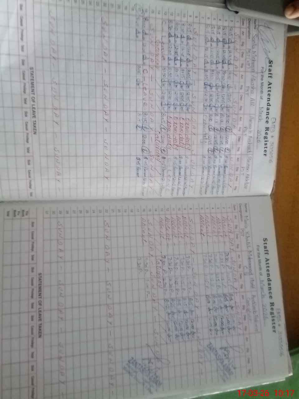 | 31**** | Ma**** Kh**** | PST Science/Maths | Regular | 0 | 0 | 28 | 0 | 0 | 0 | 0 | 0 | 0 | Absent (Un-Authorized) |