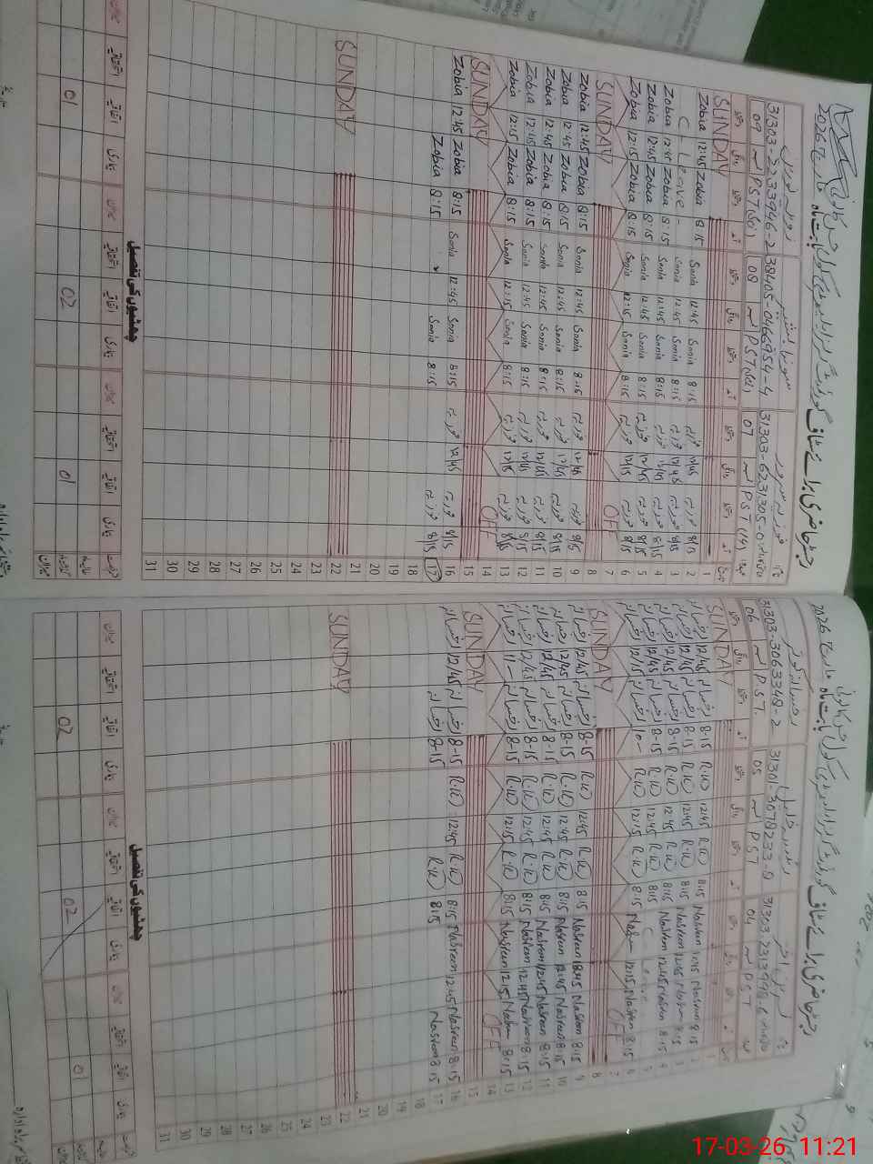 | 31**** | Re**** Bi**** | KHADIMA | Regular | 2 | 0 | 0 | 0 | 0 | 0 | 0 | 0 | 2 | Casual |