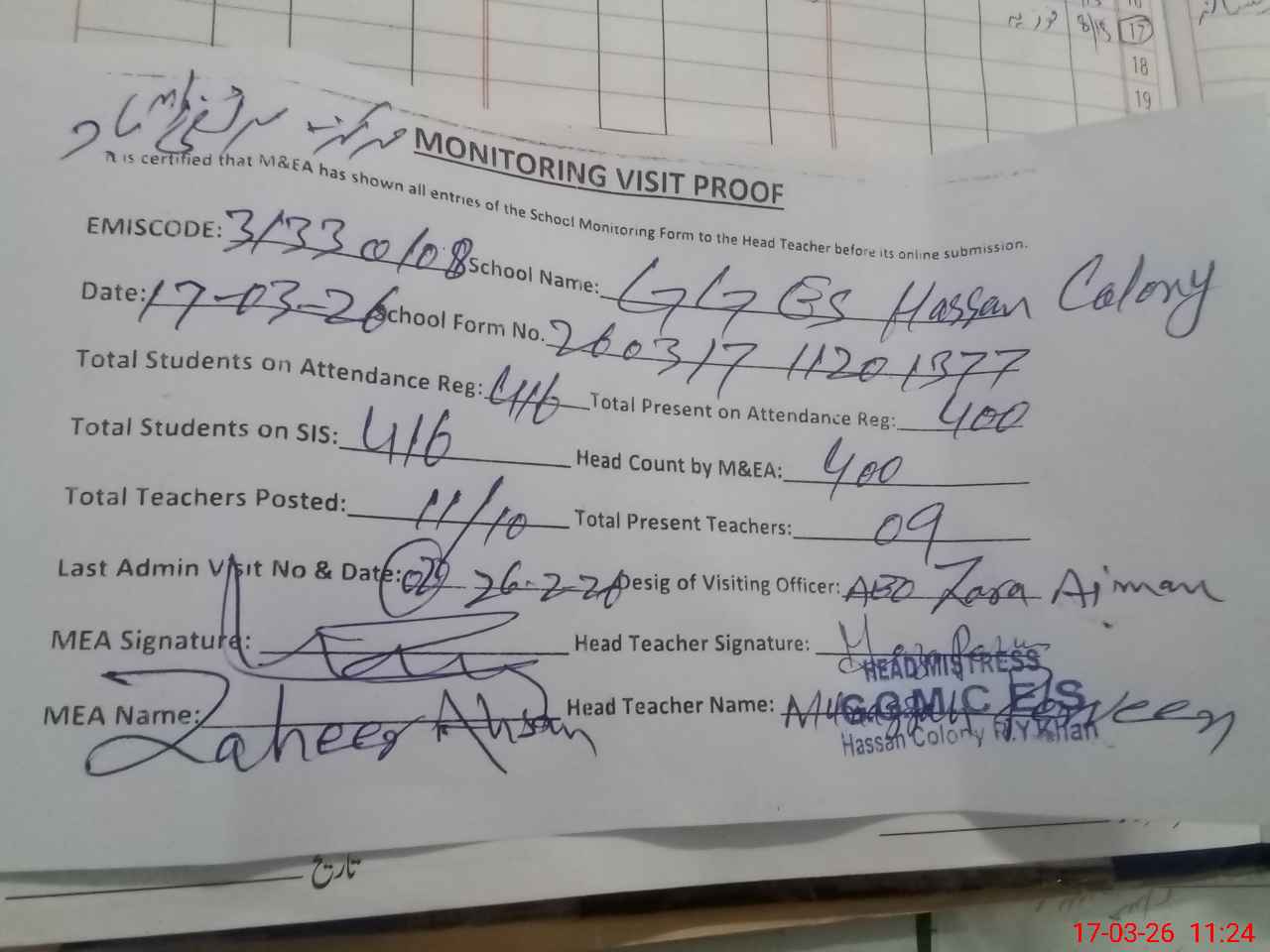 | EMIS Code: 31330108 | Name of School: GGES HASSAN COLONY | |||