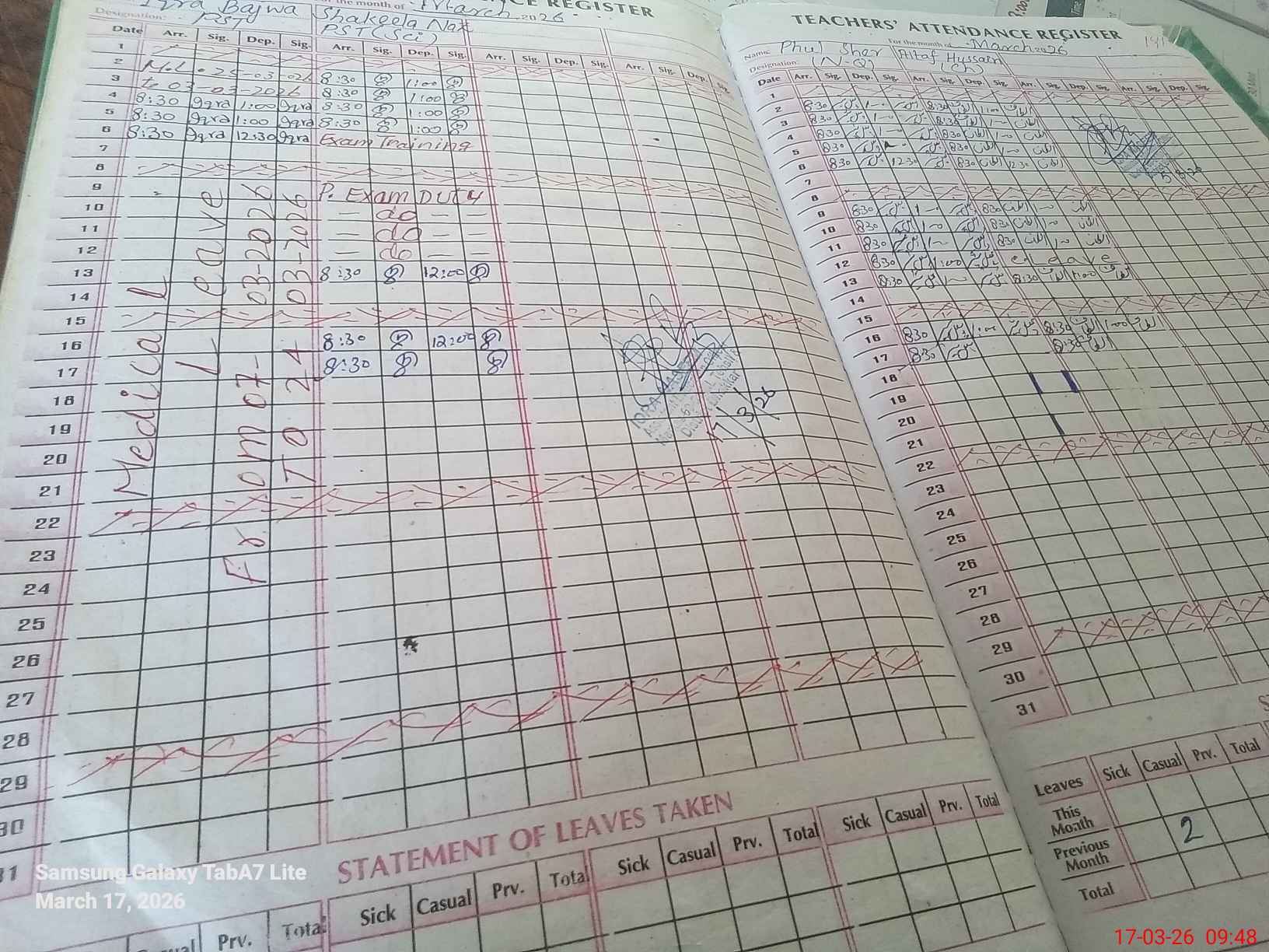 | Leave | Duty | Absent | Maternity | Medical | Ex- Pak |