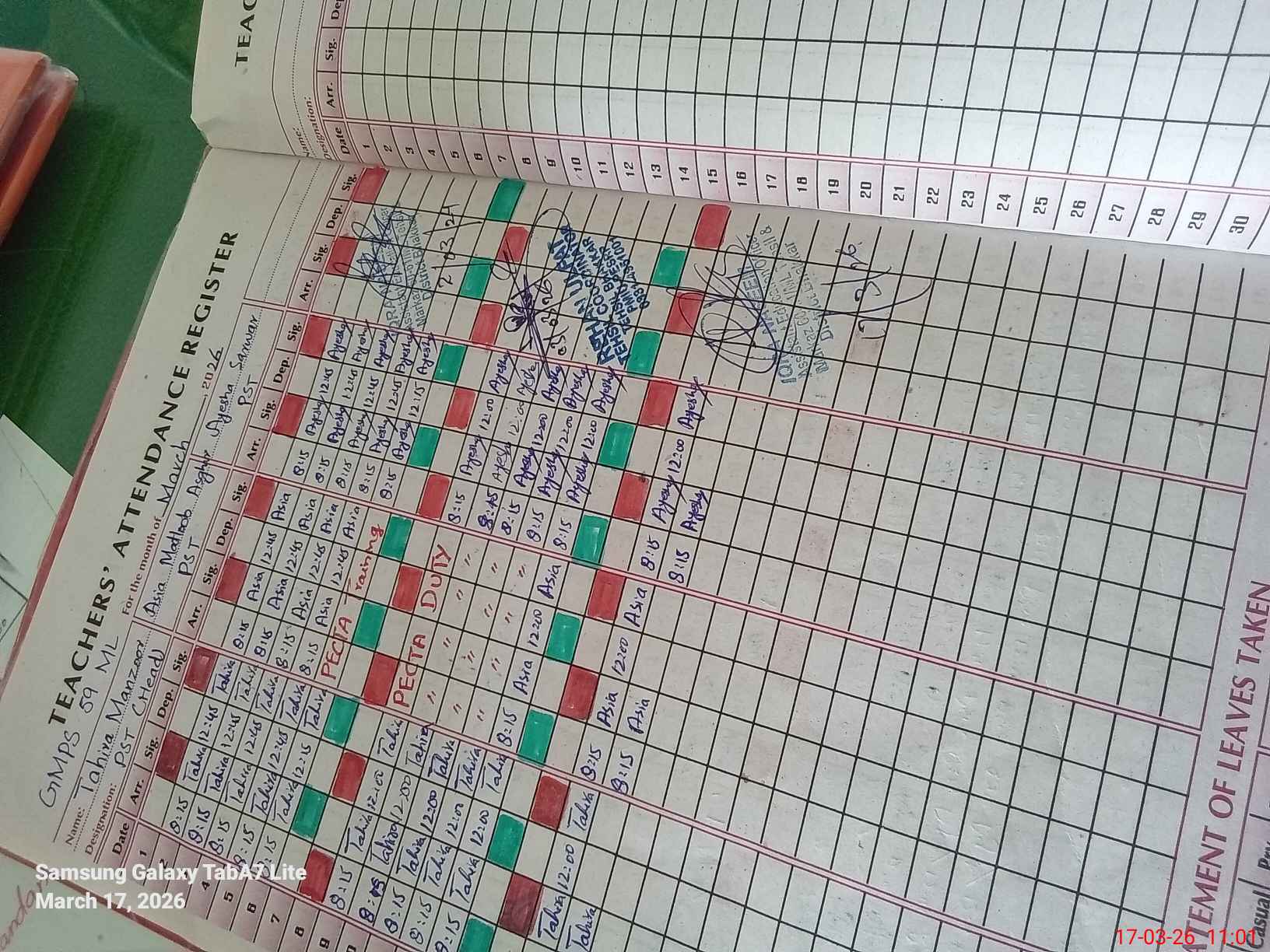 | Leave | Duty | Absent | Maternity | Medical | Ex- Pak |
