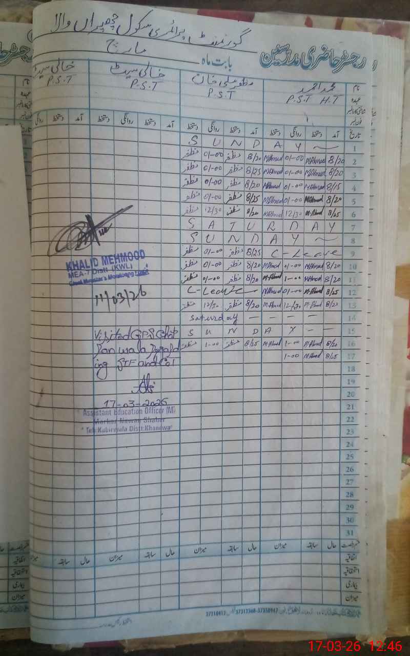 | EMIS Code: 36410306 | Name of School: GPS CHAPRAN WALA, P/O SARDAR PUR, NAWAN SHEHR | |||