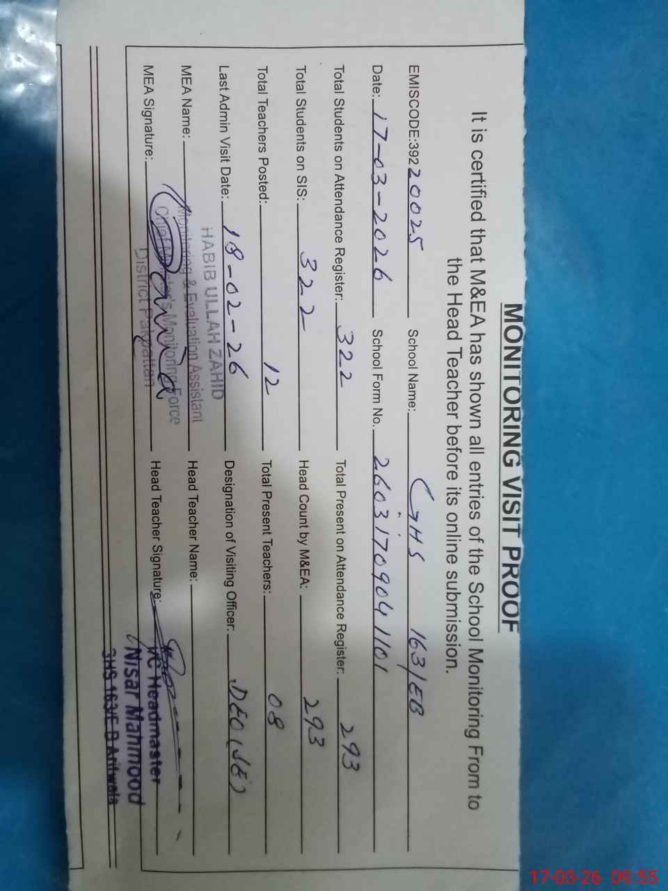 | EMIS Code: 39220025 | Name of School: GHS 163/EB | |||