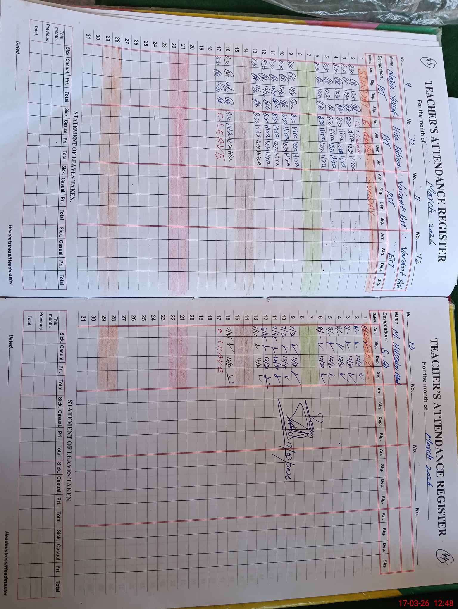 | 32**** | Hi**** Fa**** | PST Science/Maths | Regular | 0 | 0 | 0 | 0 | 0 | 0 | 0 | 0 | 0 | Casual |