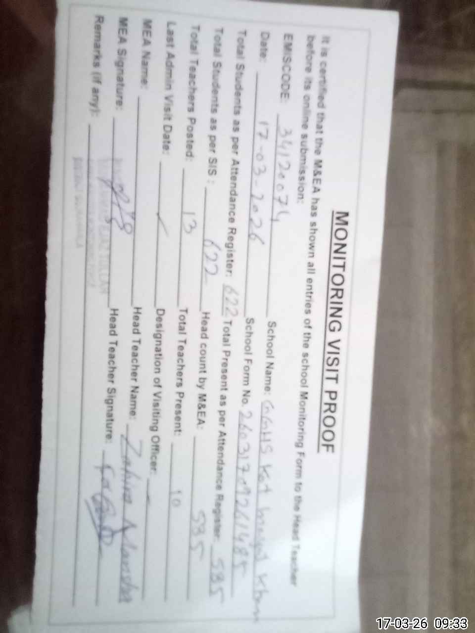 | EMIS Code: 34120074 | Name of School: GGHS KOT INAYAT KHAN | |||