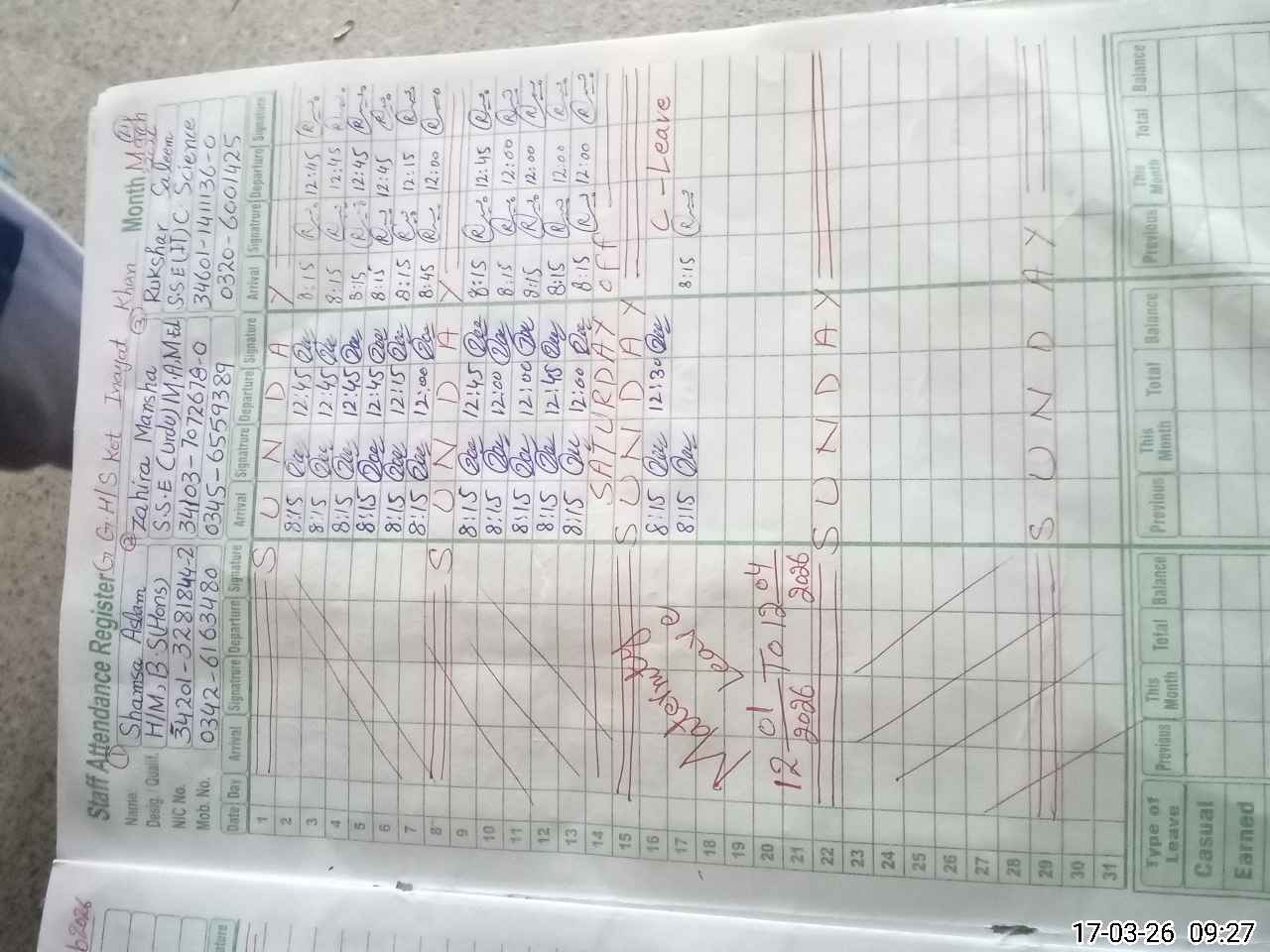 | 34**** | Sh**** As**** | Headmaster (Urdu) | Regular | 0 | 0 | 0 | 0 | 0 | 0 | 0 | 0 | 0 | Absent (Un-Authorized) |