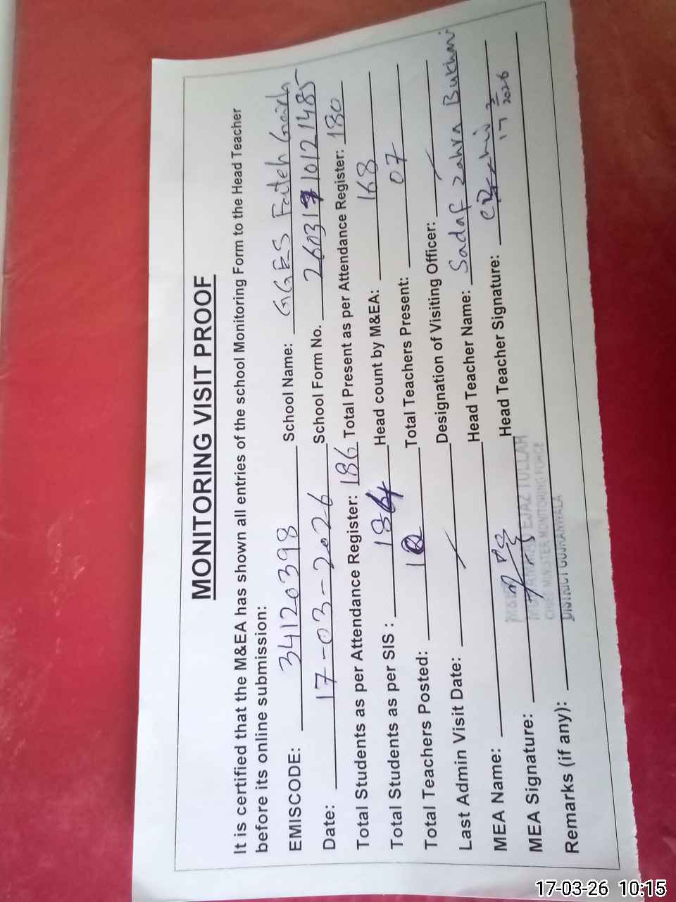 | EMIS Code: 34120398 | Name of School: GGES FATEH GARH | |||