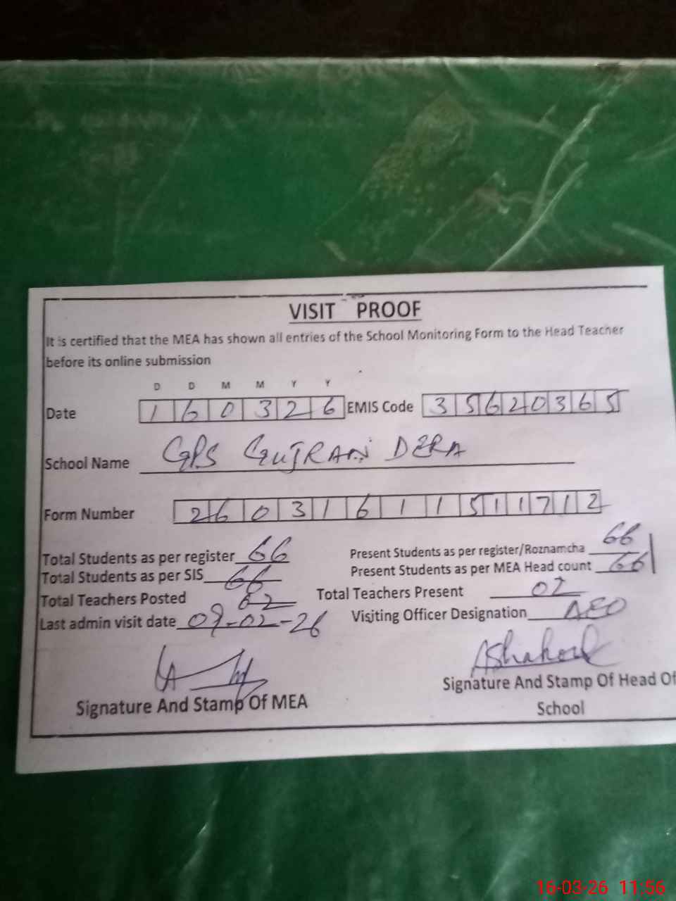 | EMIS Code: 35620365 | Name of School: GPS DERA GUJRAN | |||