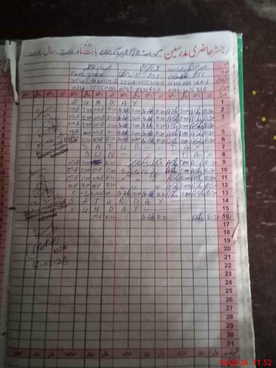 | Name: ZU**** GH**** Designation: (School Headmaster's/Headmistress's) PST Phone/Cell Number: 03**** |