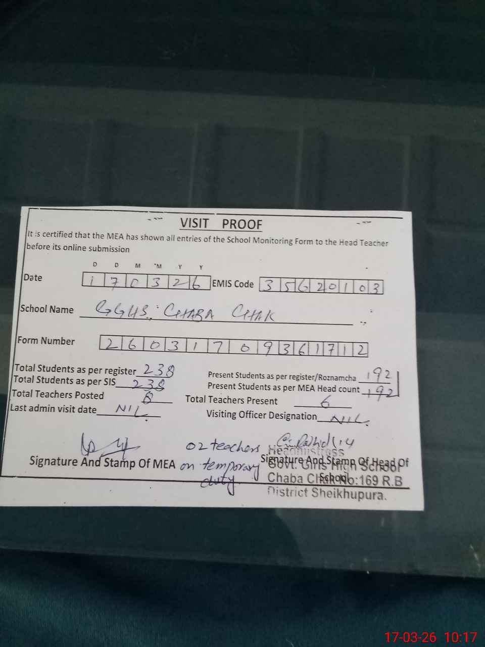 | EMIS Code: 35620103 | Name of School: GGHS CHABA CHAK 169/RB | |||