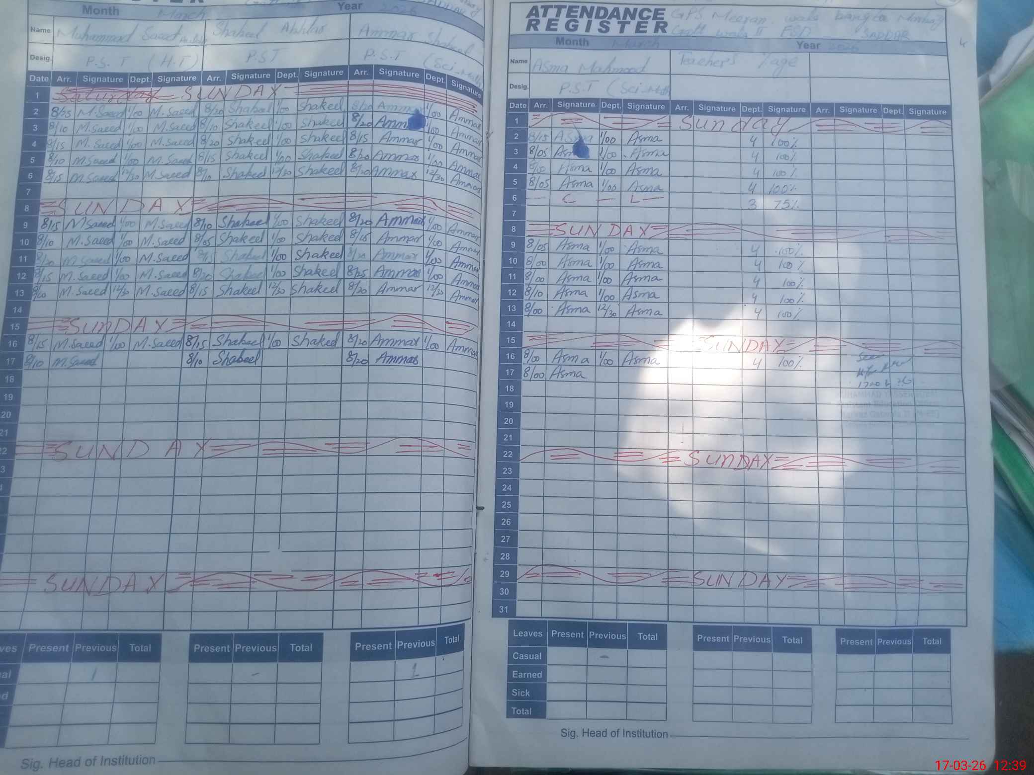 | Name: MU**** SA**** AU**** Designation: (School Headmaster's/Headmistress's) PST Phone/Cell Number: 03**** |