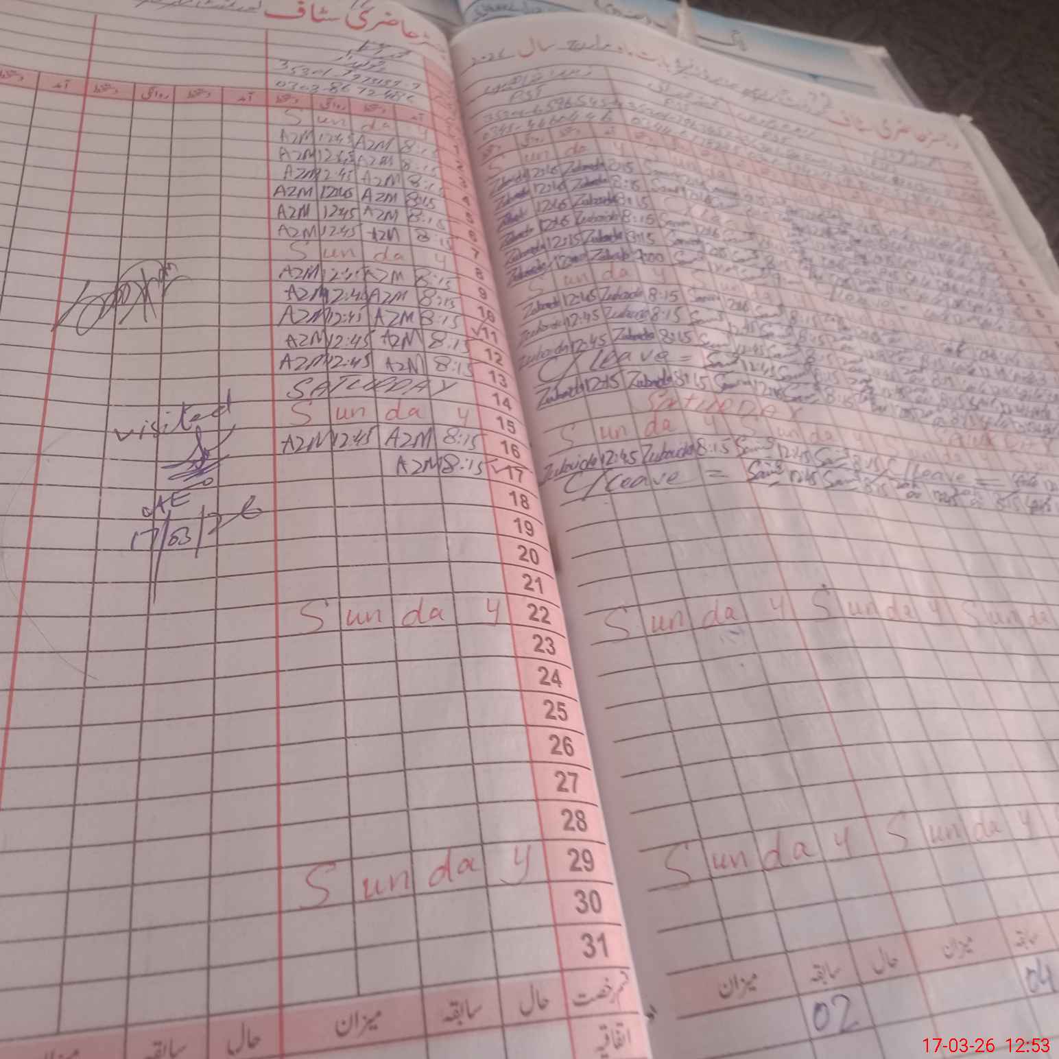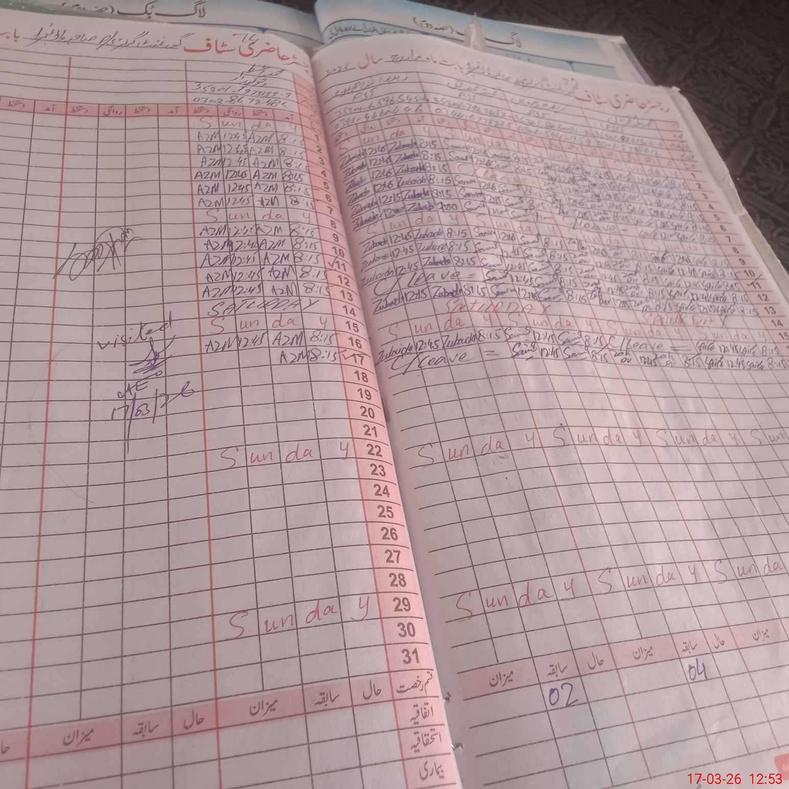| CNIC | Full Name | Designation | R/C | Absence During Last Calender Month |