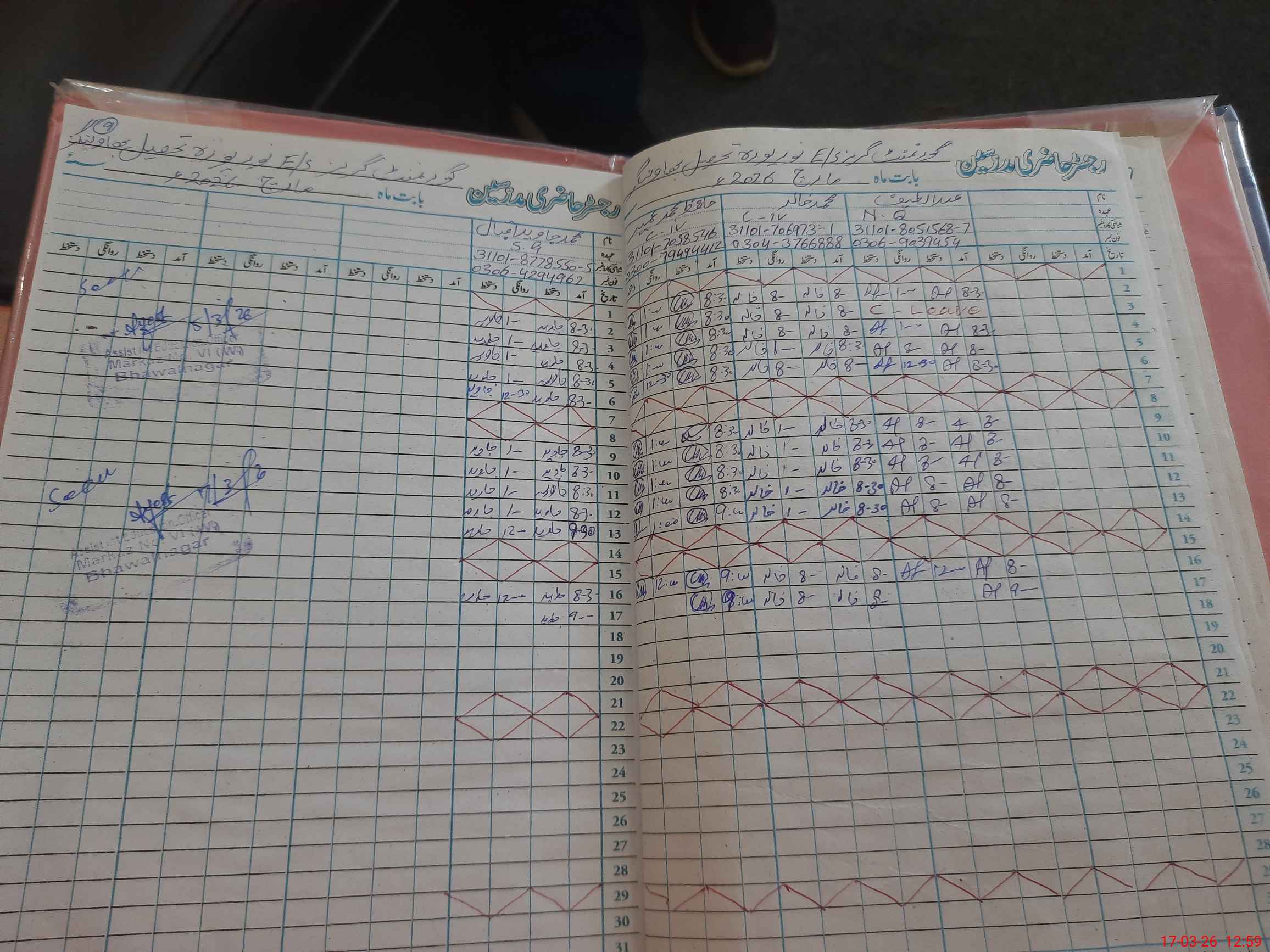 | CNIC | Full Name | Designation | R/C | Absence during last cal. month |