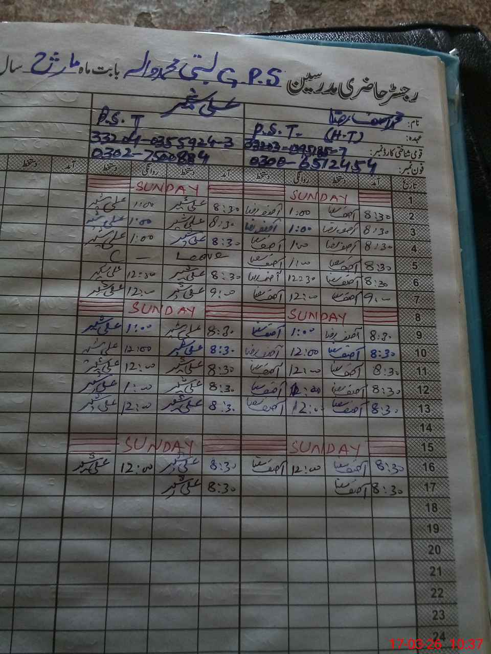 | Name: MAS**** RA**** Designation: (School Headmaster's/Headmistress's) PST Phone/Cell Number: 03**** |