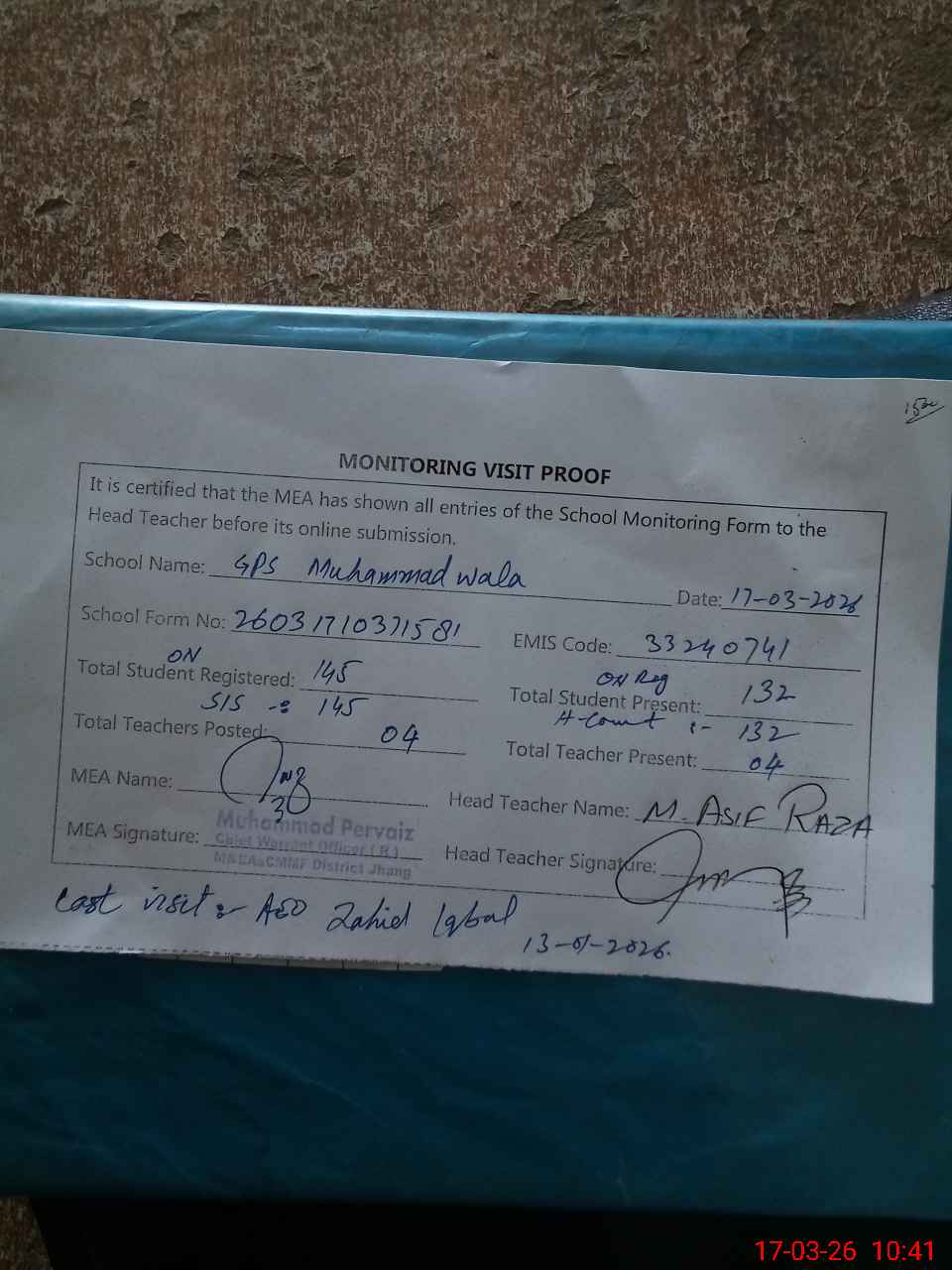 | EMIS Code: 33240741 | Name of School: GPS BASTI MOHAMMAD WALA | |||