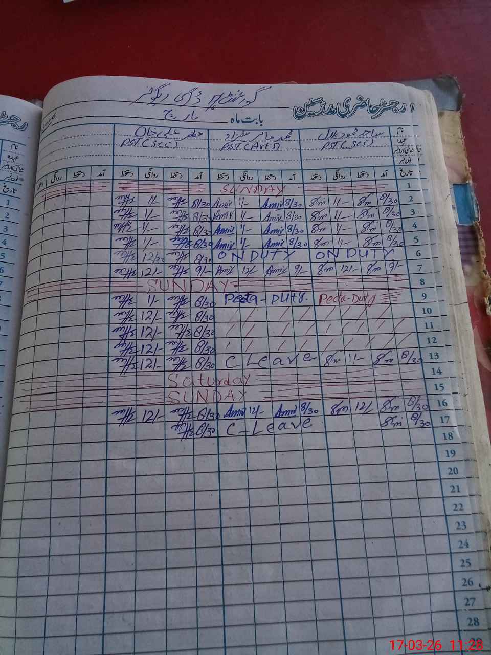 | 33**** | Im**** Kh**** | C IV | Regular | 3 | 16 | 0 | 0 | 0 | 0 | 0 | 0 | 3 | Absent (Un-Authorized) |