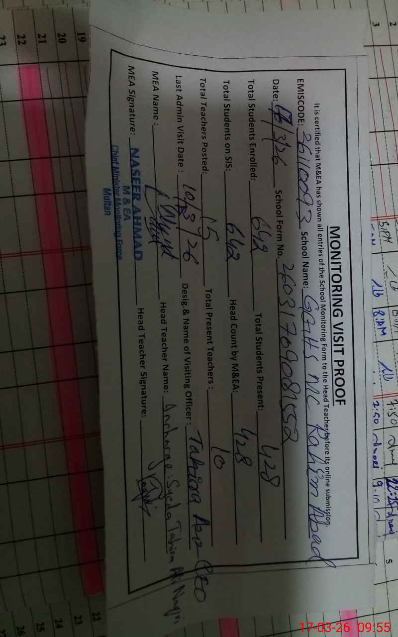 | EMIS Code: 36110093 | Name of School: GGHS MC RAHIM ABAD MULTAN | |||