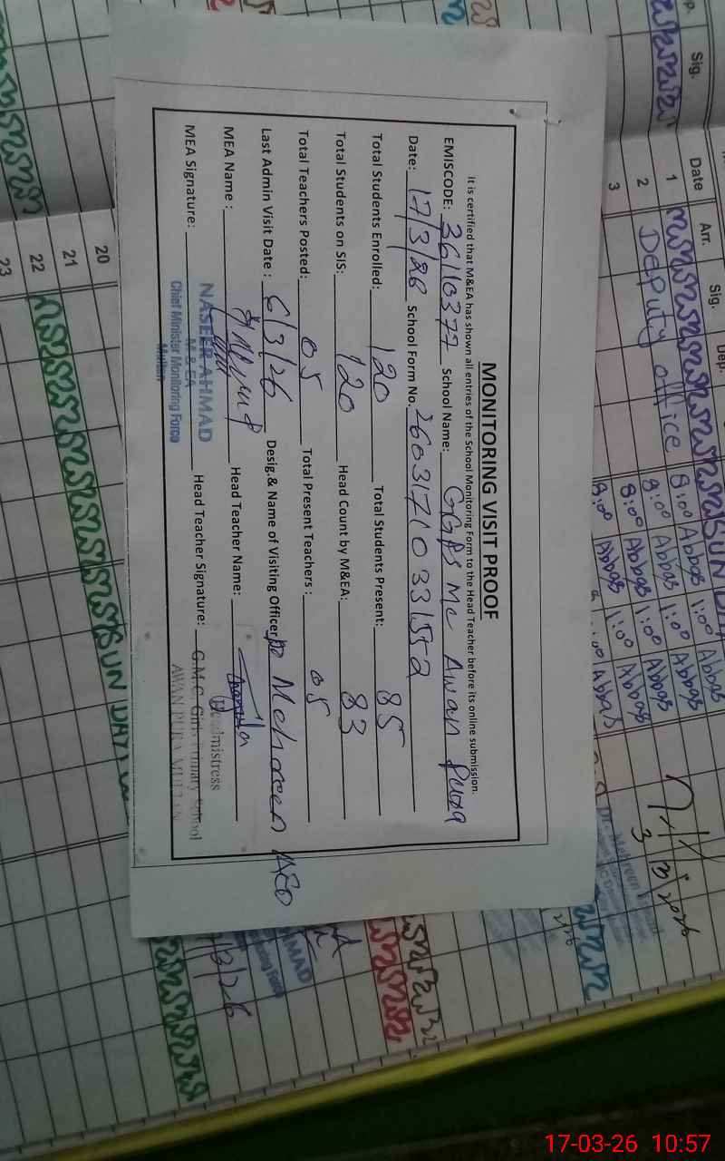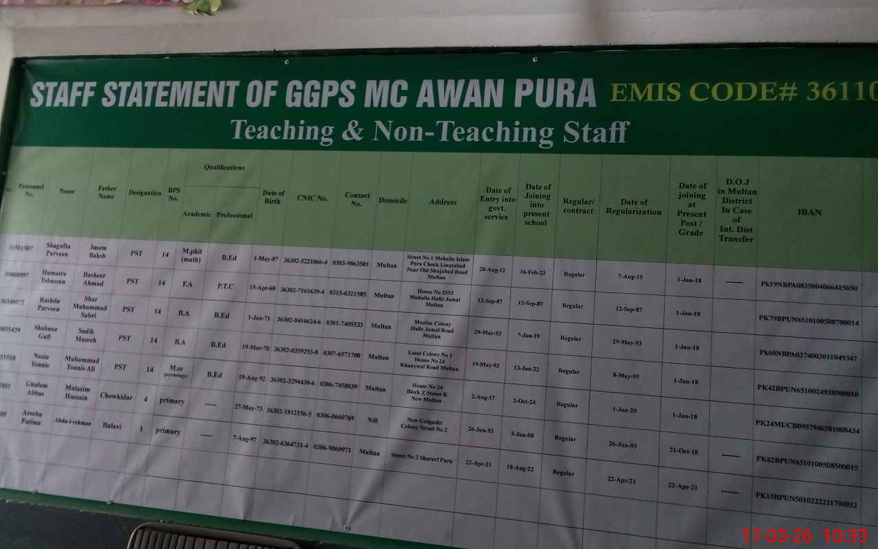 | EMIS Code: 36110377 | Name of School: GGPS MC AWAN PURA | |||