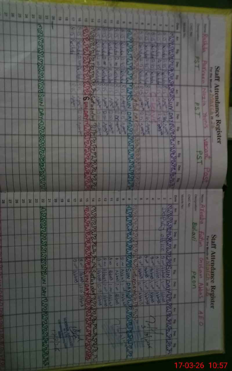 | CNIC | Full Name | Designation | R/C | Absence During Last Calender Month |