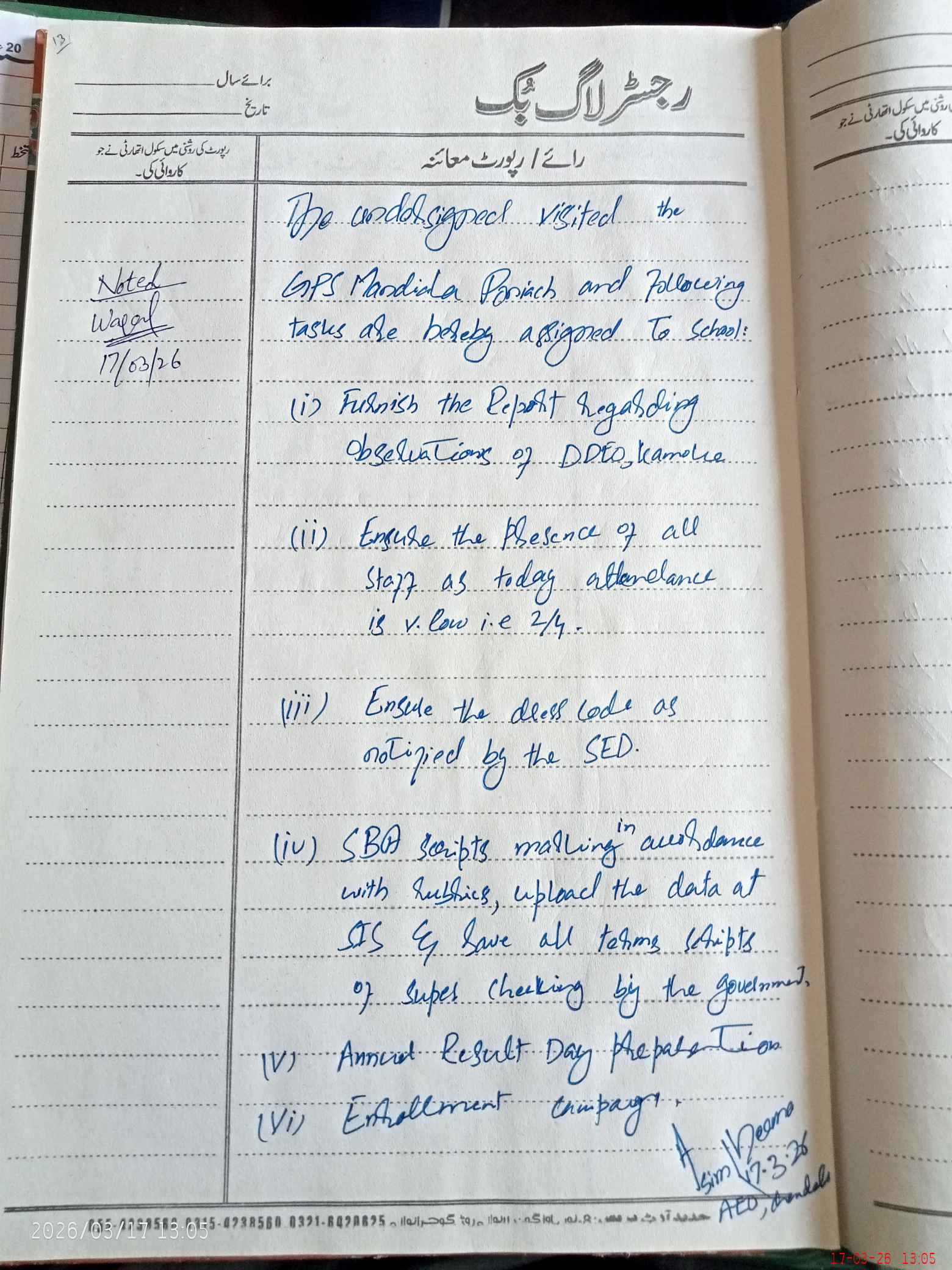 | Certified that this School was Inspected by the Undersigned MEA/DMO Today and the Information Stated Above is as Per Record. | |||||