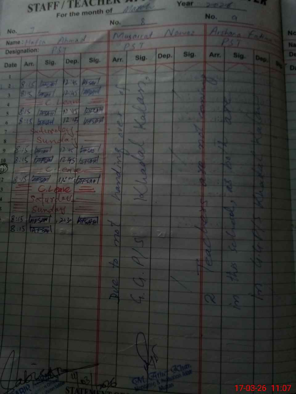 | 36**** | Ar**** Fa**** | PST Arts | Regular | 0 | 0 | 0 | 0 | 0 | 0 | 0 | 0 | 0 | Absent (Un-Authorized) |
