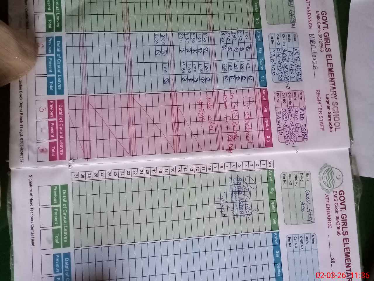 | Name: AY**** QA**** Designation: (School Headmaster's/Headmistress's) SSE (MATH) Phone/Cell Number: 03**** |