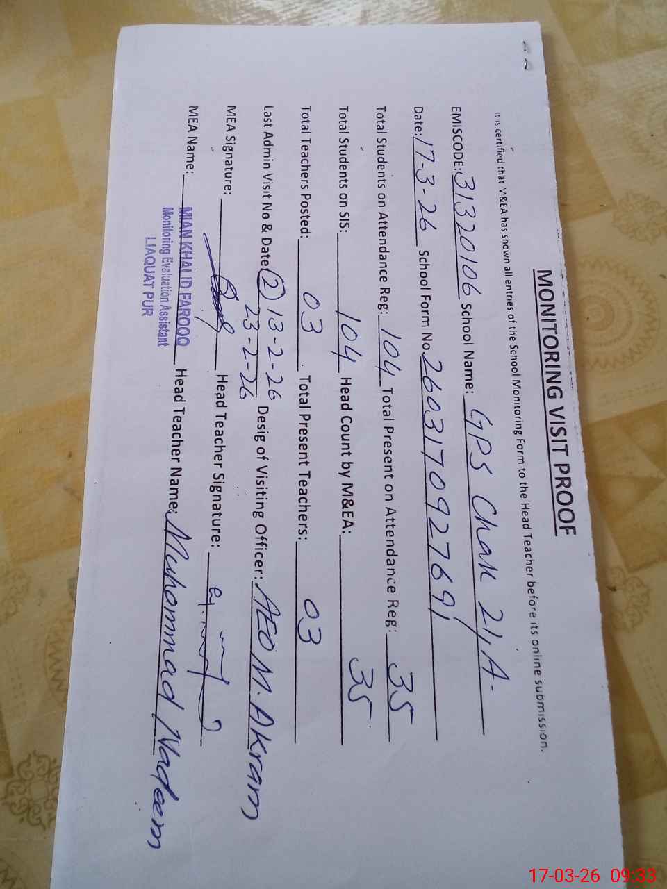 | EMIS Code: 31320106 | Name of School: GPS CHAK 21/A | |||