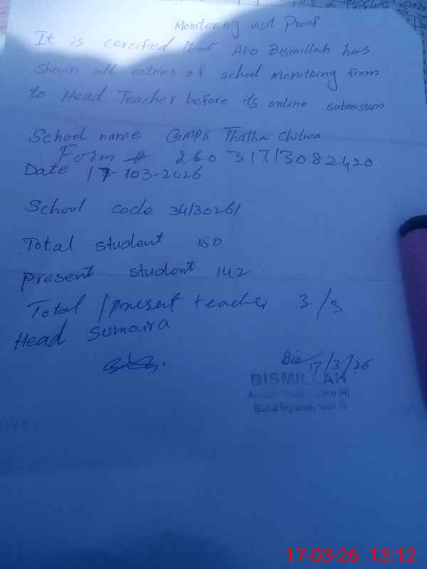 | EMIS Code: 34130261 | Name of School: GMPS THATHA CHALWA | |||