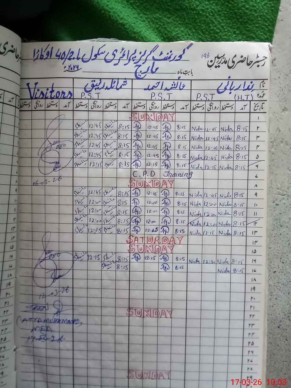 | District: OKARA | Tehsil: OKARA | Markaz: 4/4.L-FEMALE | Level: Primary | |