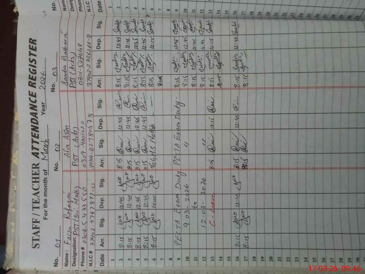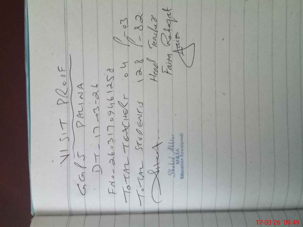 | Name: Fa**** Ra**** Designation: (School Headmaster's/Headmistress's) PST (Sci Math) Phone/Cell Number: 03**** |
