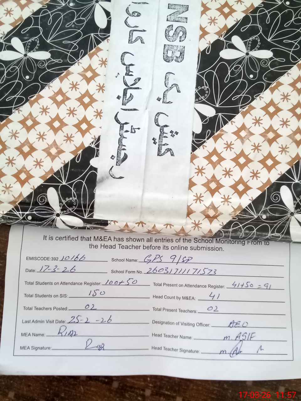 | EMIS Code: 39210166 | Name of School: GPS 9 SP | |||