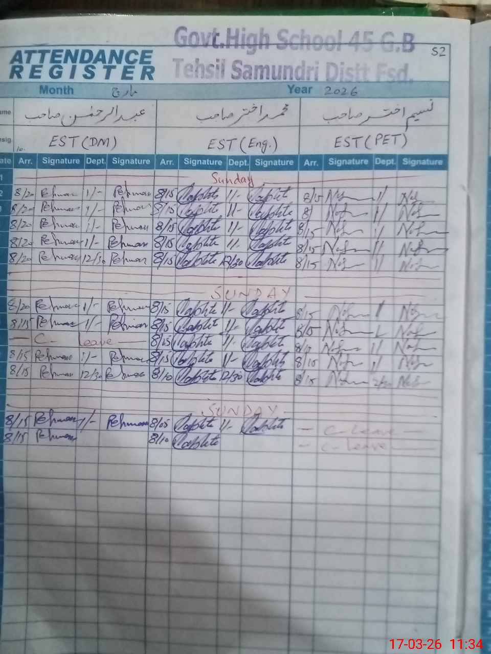 | EMIS Code: 33130368 | Name of School: GHS CHAK 45 GB SAMUNDRI FSD | |||