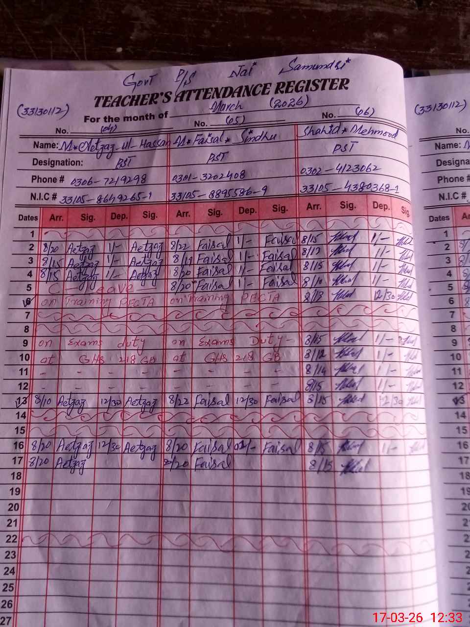 | Name: MU**** SA**** SA**** Designation: (School Headmaster's/Headmistress's) PST Phone/Cell Number: 03**** |
