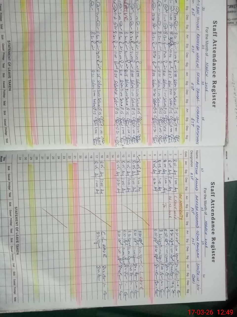 | Leave | Duty | Absent | Maternity | Medical | Ex- Pak |