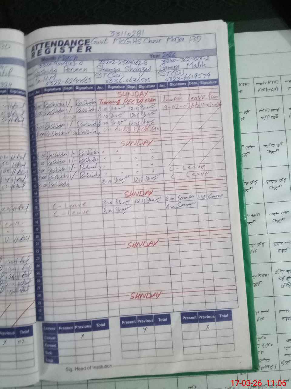 | 33**** | Ab**** Gh**** | MASHKI | 2 | 0 | 0 | 0 | 0 | 0 | 0 | 0 | 2 | Absent (Un-Authorized) | |