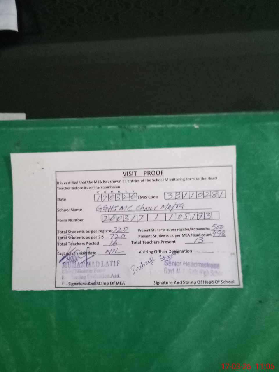 | EMIS Code: 33110281 | Name of School: GGHS MC CHOR MAJRA G.M.ABAD | |||