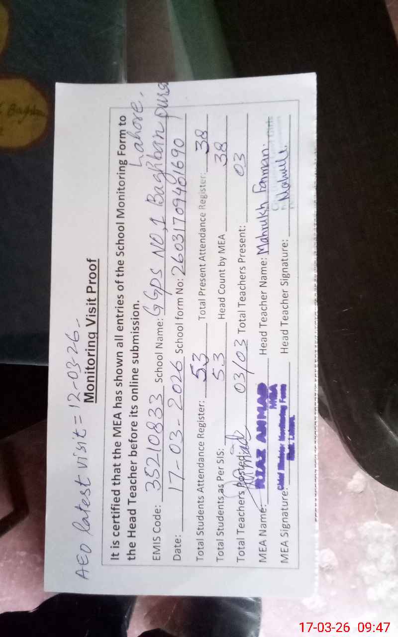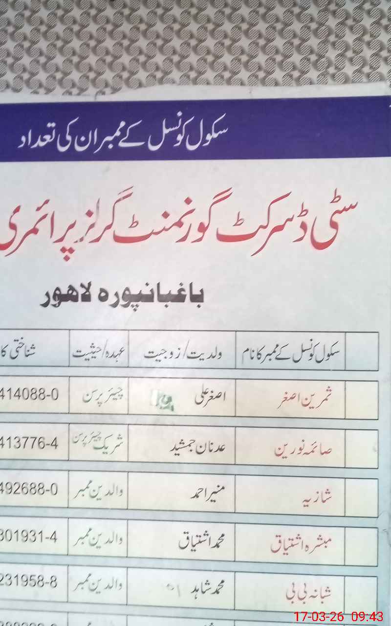 | EMIS Code: 35210833 | Name of School: GGPS NO.1 BAGHBAN PURA (EX-MCL) | |||