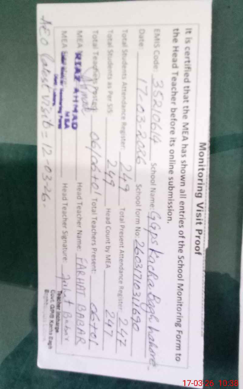 | EMIS Code: 35210614 | Name of School: GGPS KACHA BAGH | |||