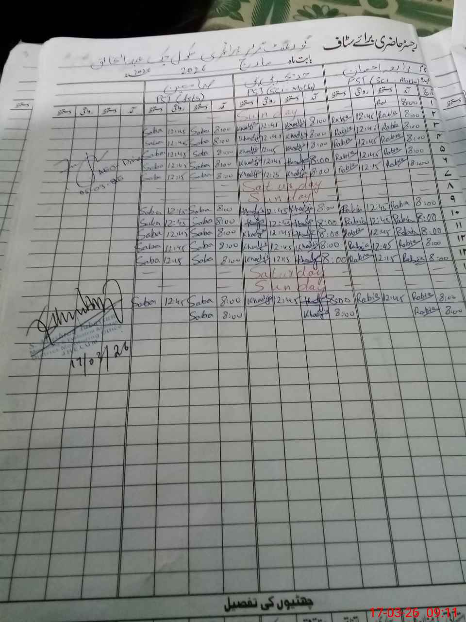 | Remarks (Use Separate Page if Required): ECE and Nursery class are off due to Exam schedule. | |||||