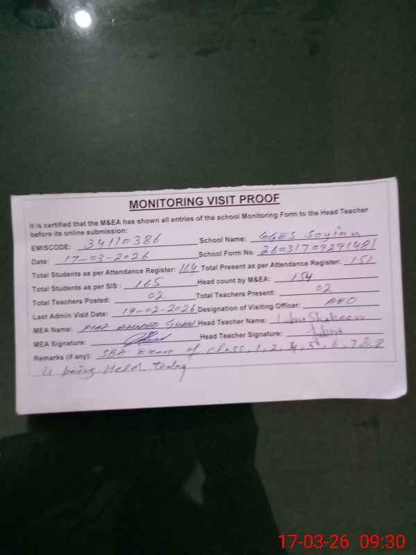 | EMIS Code: 34110386 | Name of School: GGES SOYIAN | |||