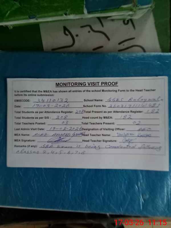 | EMIS Code: 34110132 | Name of School: GGES BALAY WALA | |||