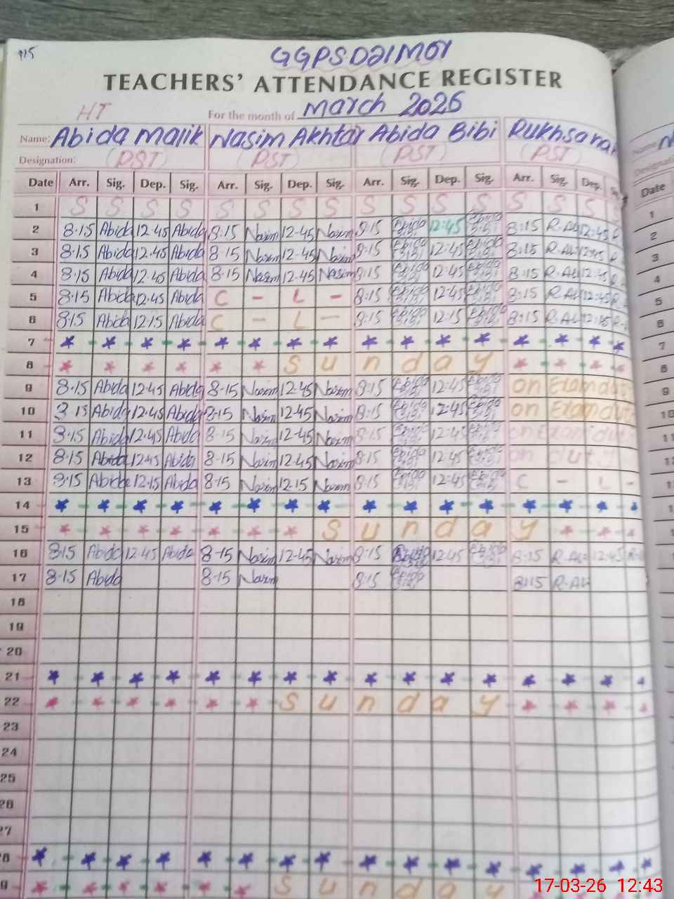 | Remarks (Use Separate Page if Required): 73 students of EC kg grade 1& grade 3 SBA not scheduled today on 17-03-2026. | |||||