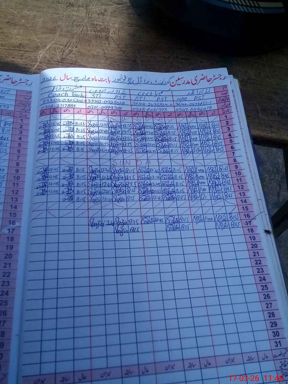 | Name: Na**** Ah**** Designation: (School Headmaster's/Headmistress's) PST Phone/Cell Number: 03**** |