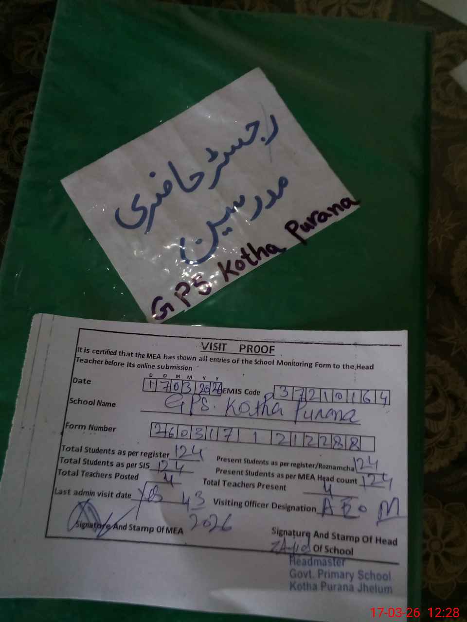 | Attendance Register | Head Teacher | MEA with School | Visit Proof |