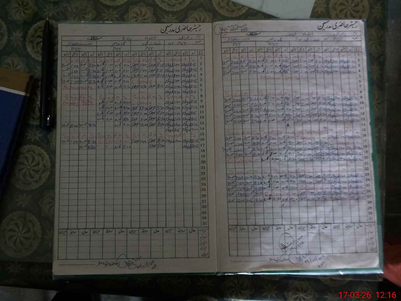 | CNIC | Full Name | Designation | R/C | Absence During Last Calender Month |