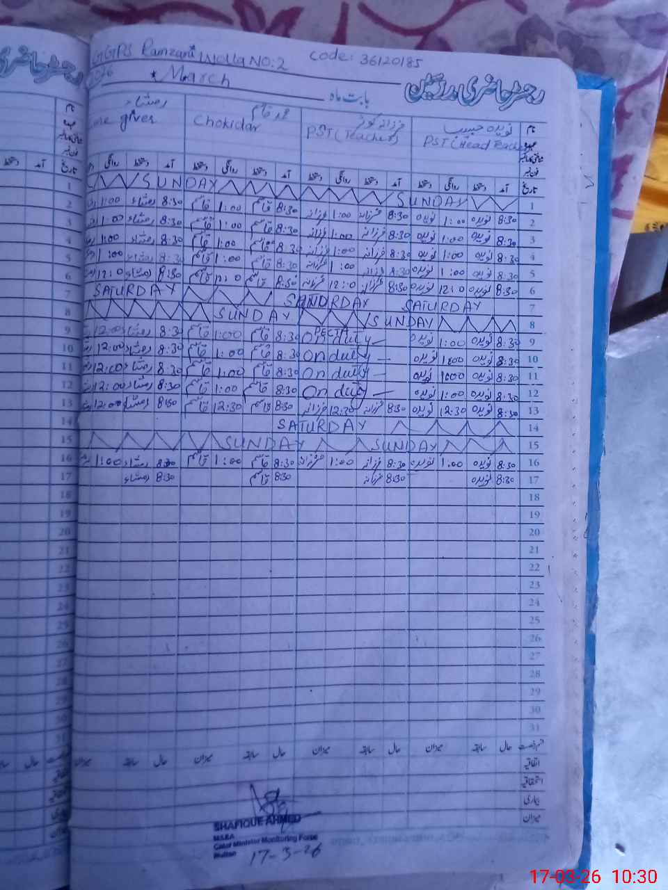 | Name: Na**** Ha**** Designation: (School Headmaster's/Headmistress's) PST Phone/Cell Number: 03**** |